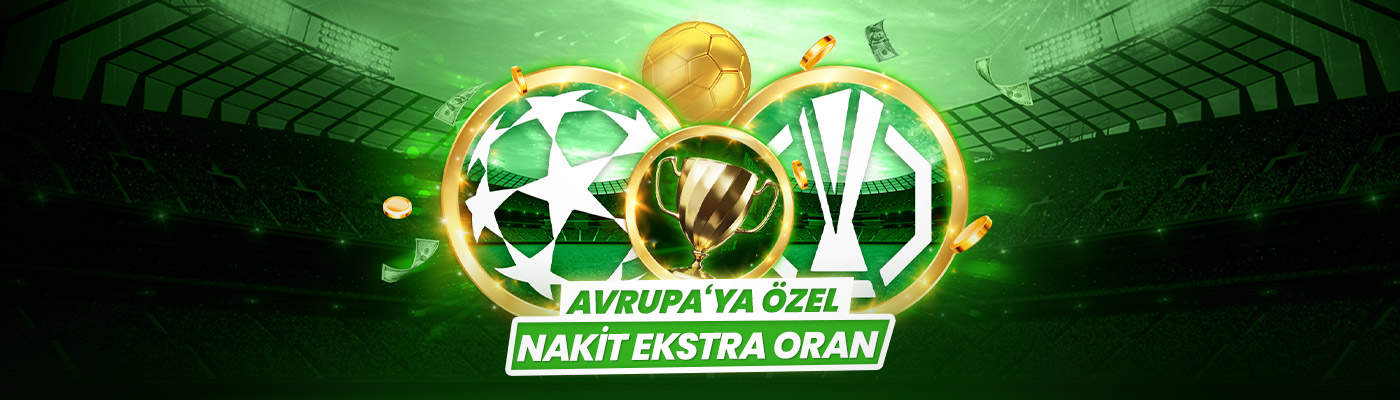 Hemen hesabına giriş yaparak “Ekstra Oran” sayfasına git, Şampiyonlar Ligi ve Avrupa Ligi maçlarına özel %25 Nakit Ekstra Oranlardan dilediğine bahis yap!